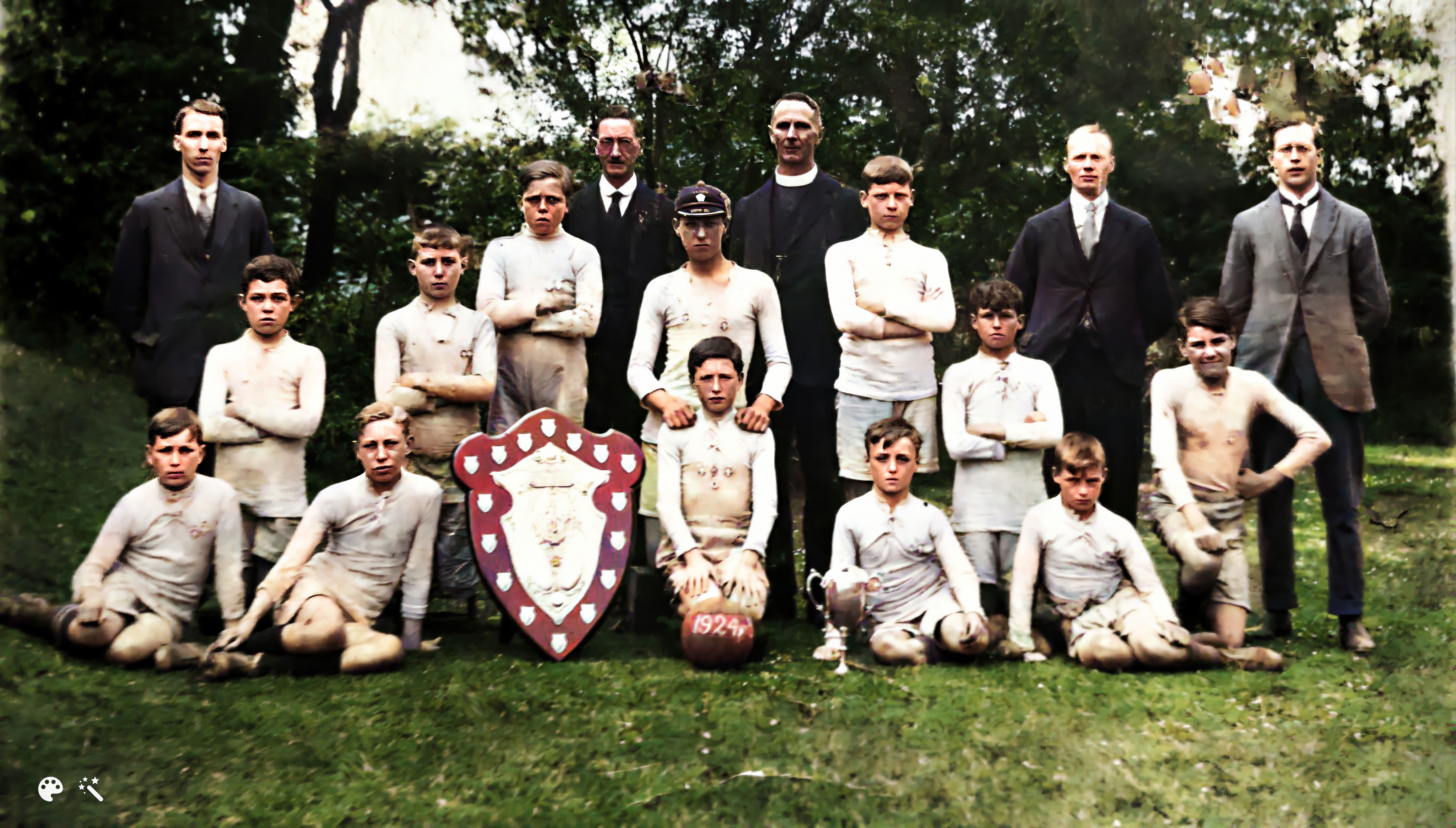 John Reynolds on the above photo: My dad Reuben Albert Reynolds is sitting in middle row on the left,next to the master. My grandfather Reuben Reynolds is standing back right with gold chain and medal.There would have been a Burkinshaw and probably Stan Grey on the photo.