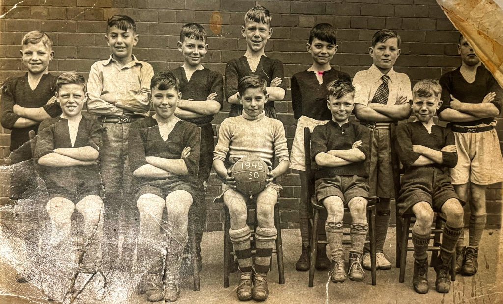 Front sat on floor L-R. Albert Hey, Martin Walters. Walt Clayton: “Mr Woolford (2nd in from left) , he moved from Goldthorpe juniors to the Dearneside secondary school. He played a big part in the WW2 spying machine, Enigma.