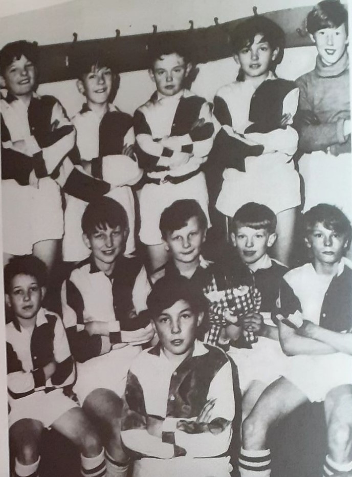 St. Albans Back Row (L to R): Vincent Balmer, Peter Lalic, Michael Rodgers, Bernard Fitton, Gerard Rave, Michael Readman, Robert Hughes, David Carter. Front Row (L to R): Martin Brady, Thomas Noonan, Paul Hilton, Hugh McLaughlin, John Hubery, David Mannion & John Lavin. Teacher: Mr David Earlie. Credit: Hugh Mclaughlin (for photo), Michael Rodgers (for the names)