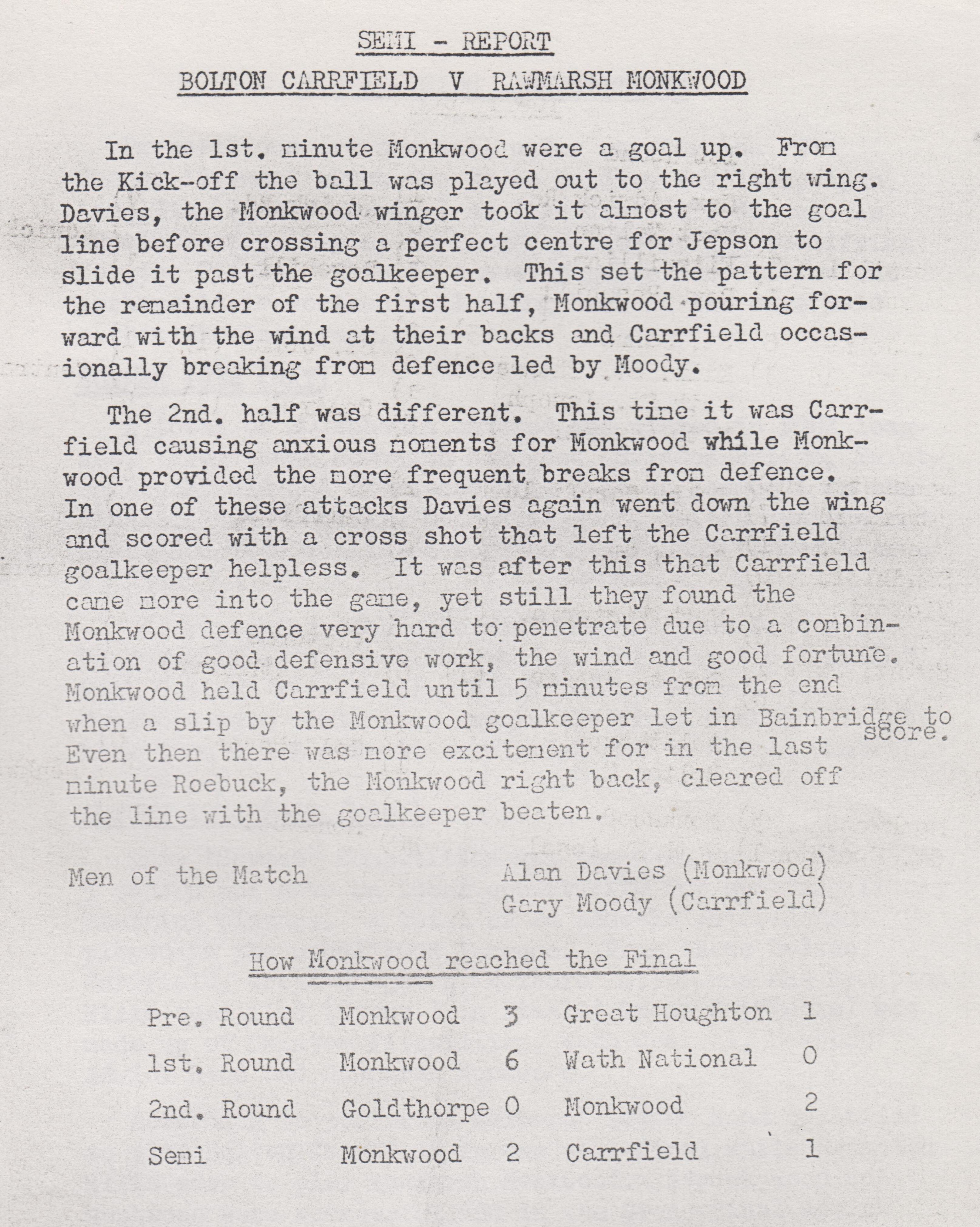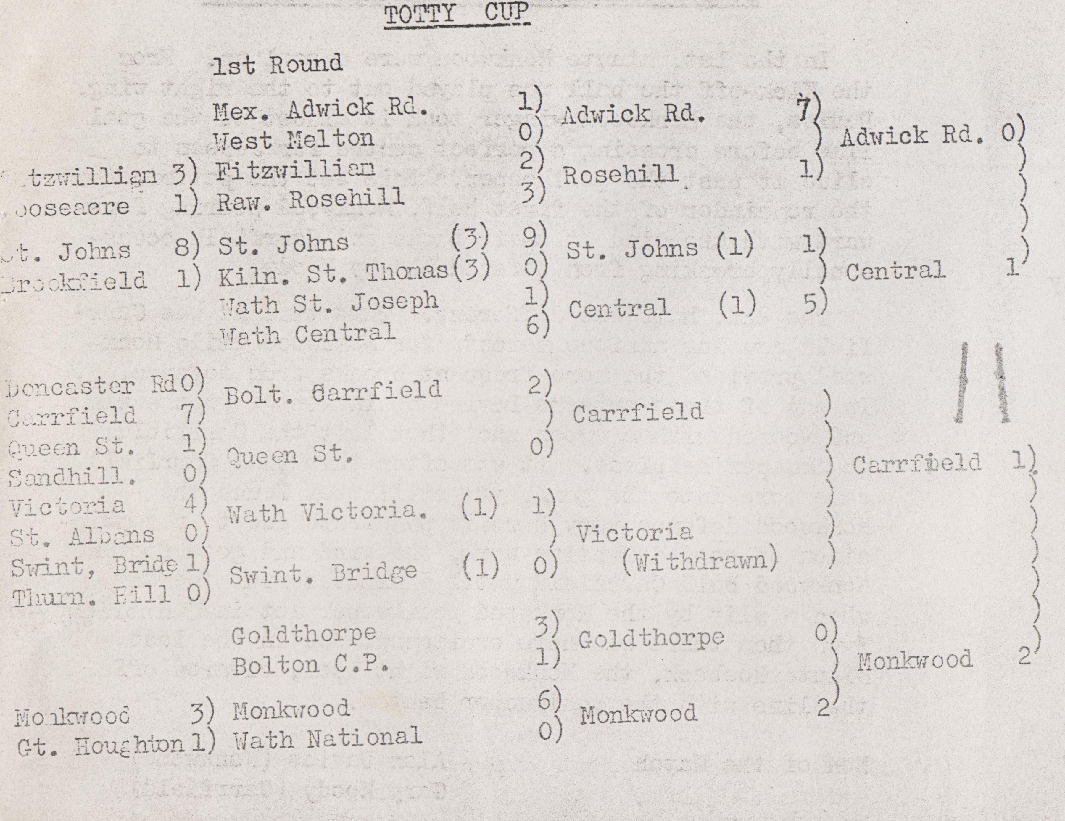 Jeremy Powell : “I remember playing in the final of the Totty Cup for Rawmarsh Monkwood Junior School in 1975 and 1976. We lost the first final, our only defeat that season. – not sure who we lost to! All the finals were at the LNER ground.”