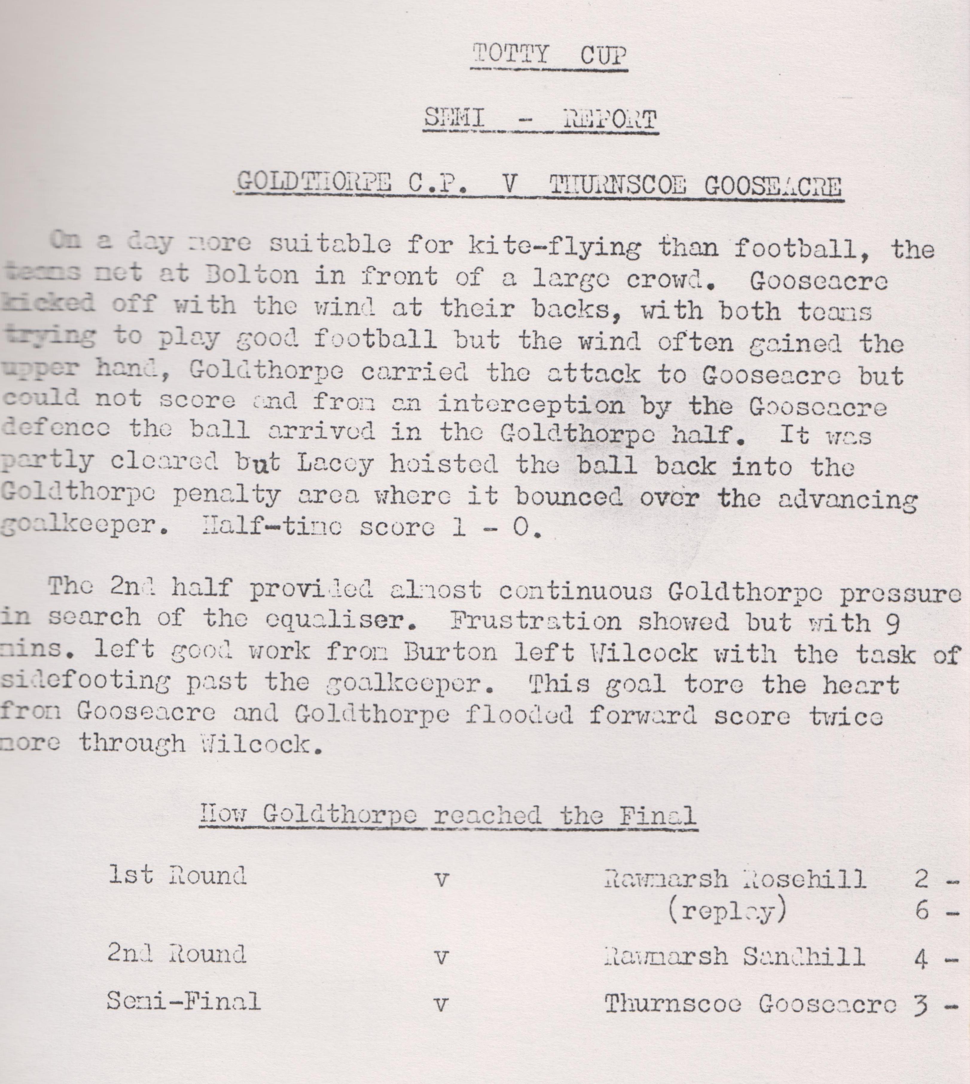 Newspaper report of the final replay: Monkwood 3 Goldthorpe 2: