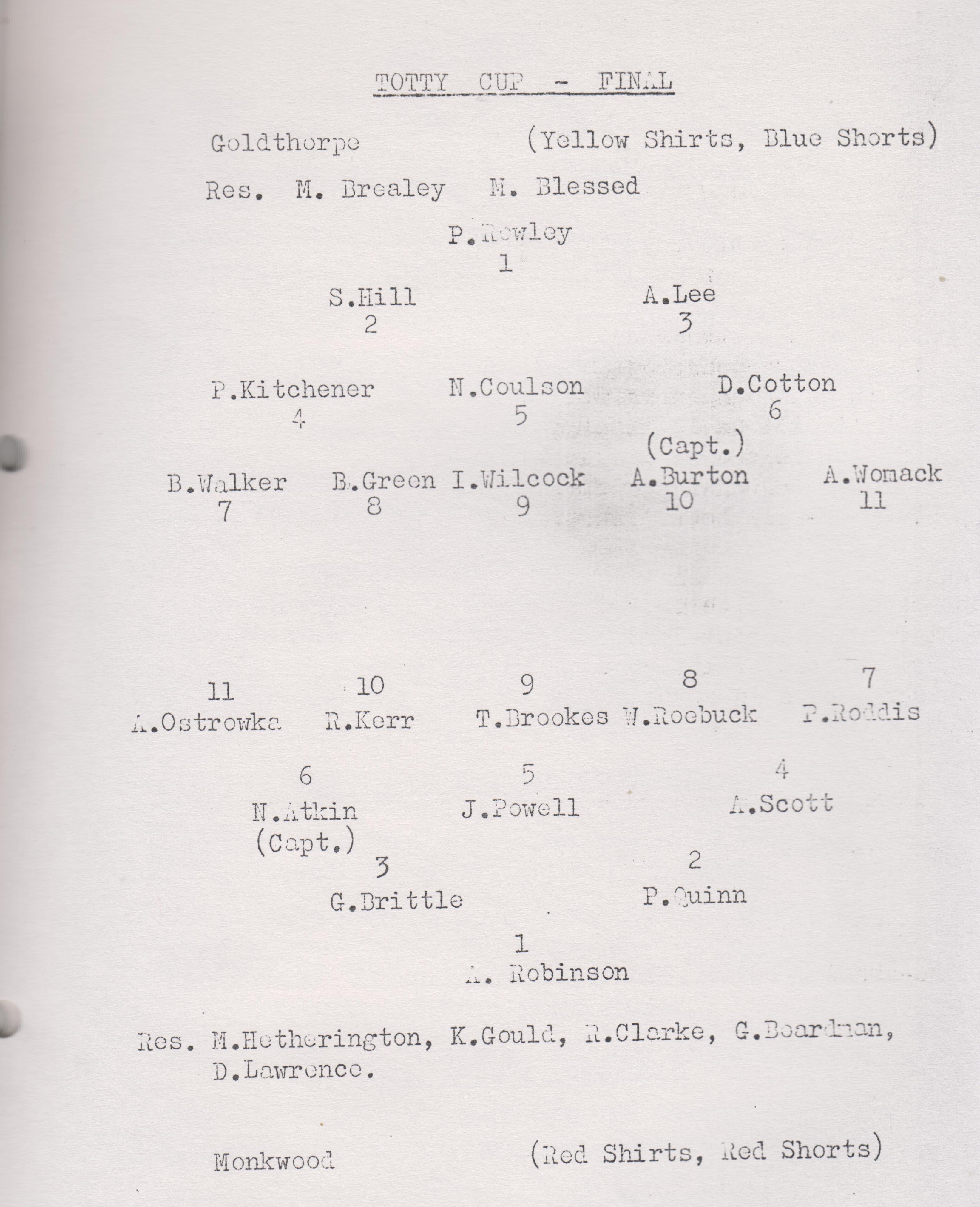 Jeremy Powell: “I remember playing in the final of the Totty Cup for Rawmarsh Monkwood Junior School in 1975 and 1976. In 1976, I think we played Goldthorpe in the final. We drew the first game, but went on to win the replay. All the finals were at the LNER ground. I have a photograph of our winning team somewhere, that was published in the South Yorkshire times.”