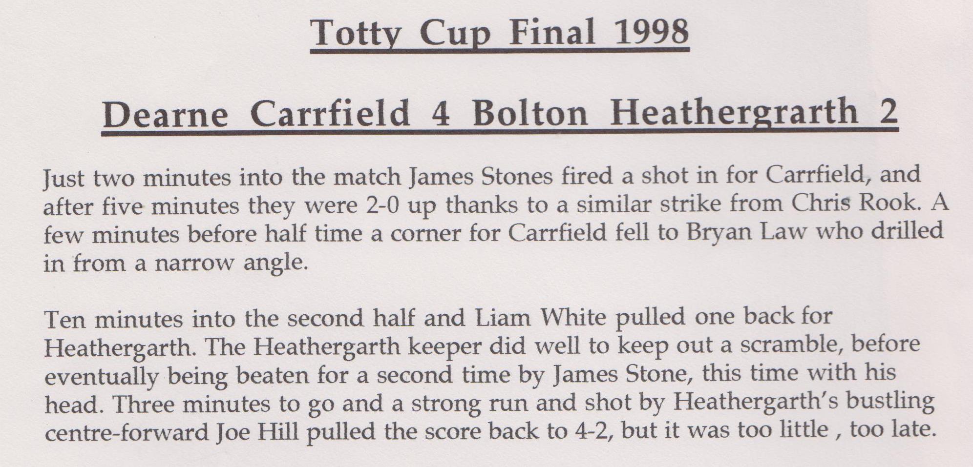 1998 Dearne Carrfield 4 Bolton Heathergarth 2 Brett Sinclair’s winners medal… If you have anymore information on this final, or previous rounds, please fill in the Contact Form below. Go backYour message has been sent Name(required) Warning Email(required) Warning Comment(required) Warning Warning. Submit Δ Share this: Click to share on X (Opens in new window) X Click to share on Facebook (Opens in new window) Facebook Like Loading...