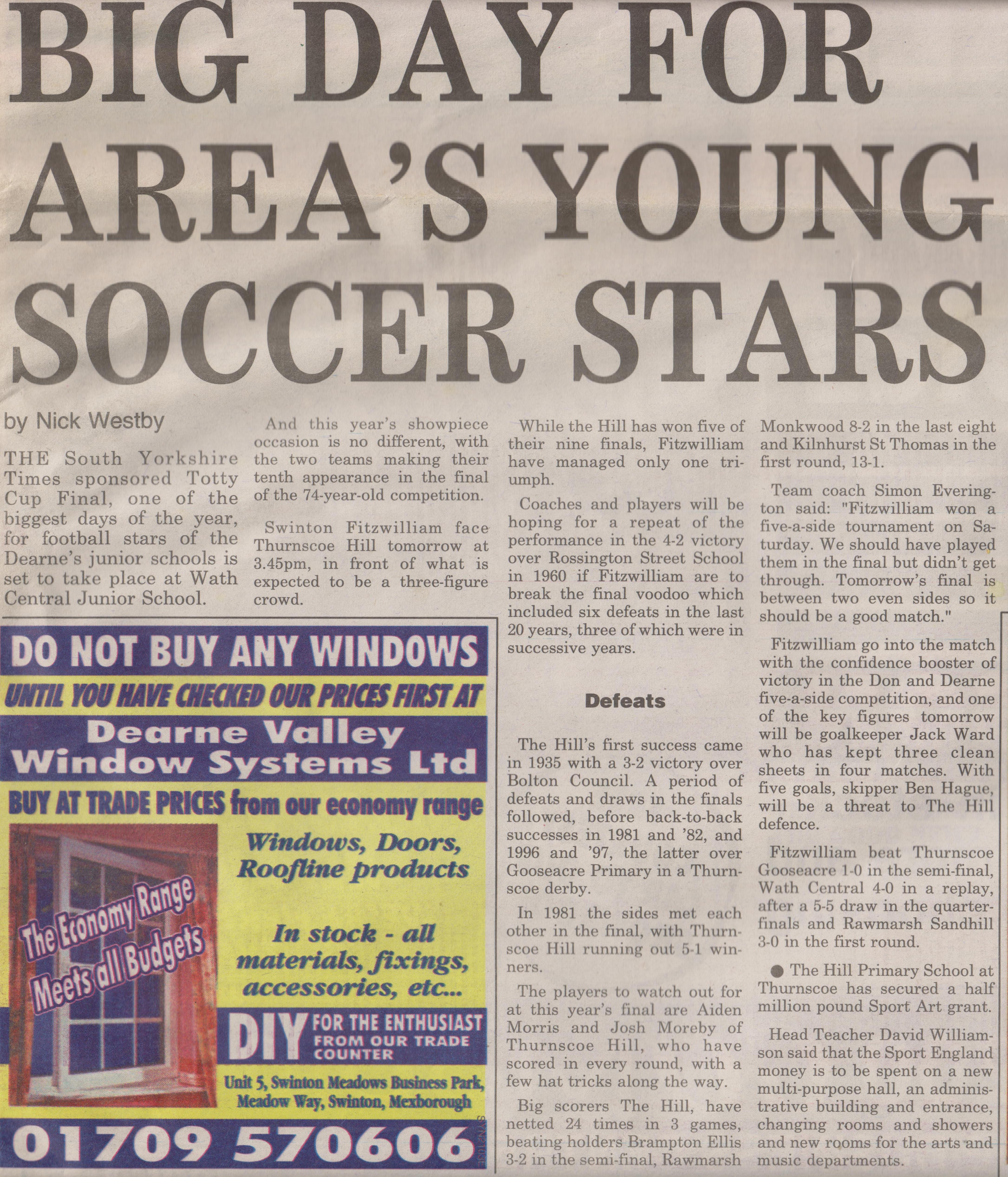 The Swinton boys managed to double their advantage before the delighted Fitzwilliam following had calmed down, Hague pouncing on the ball after it had deflected off the unfortunate Harper.