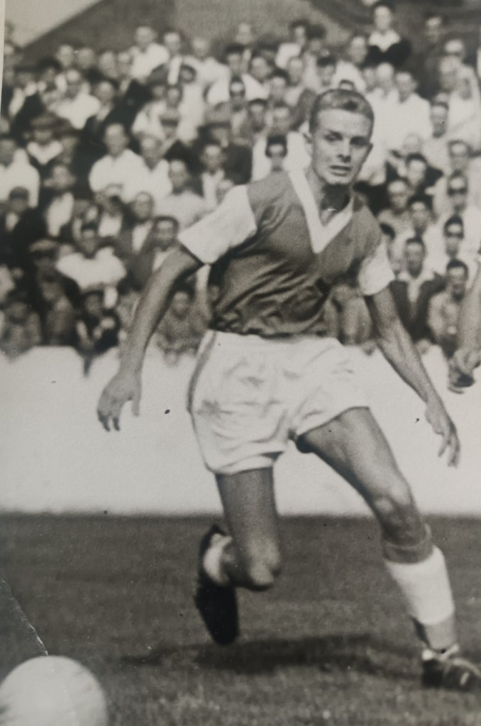 Fortunately a top Rotherham scout was viewing who invited me to see Andie Smales, the Rotherham Manager. I duly obliged and became a part-time professional after serving one year in the lower teams. At the time, I was serving a 5 year apprenticeship with the NCB in Electrical Engineering. I slowly moved up in class making my 1st team debut at Stoke at the age of 21. Over the next two years I played maybe 15 games in the first team (2nd Division ) scoring once. I scored in a 2-2 draw against Bill Shankly’s Liverpool (wage £11) and also scored in a 1-0 win v Portsmouth (wage £13). I also scored twice in the Sheffield Senior Cup v Doncaster Rovers.
