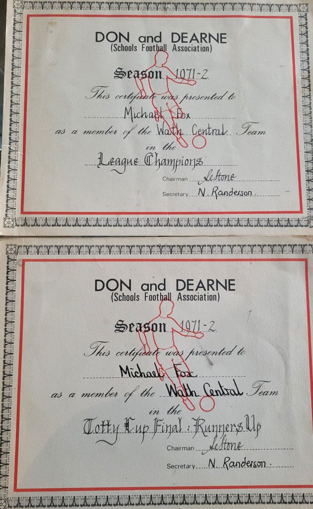 My first taste of competitive soccer came at Wath Central School where I played in the infamous “tied” Totty Cup Final (1974) with Adwick Road School, Mexborough. We beat strong teams from Swinton Brookfield and Bolton Carrfield on the way to the final.