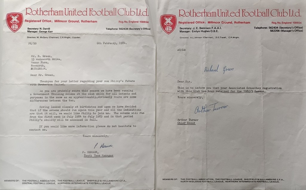 Phil believes that Dennis Lound’s photographs from the Totty Cup final helped him on the way to sign as a schoolboy player for Rotherham United – playing against Paul Gascoigne (RUFC Youth team beat Newcastle United twice in one season).