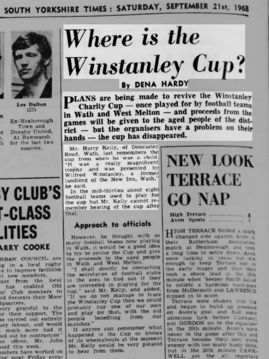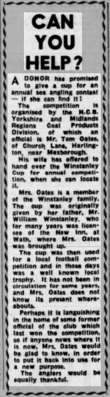 Below are two appeals to try and locate the Winstanley Cup – one from 1968 and one from 1972 (both in the South Yorskhire Times).