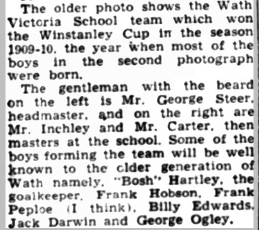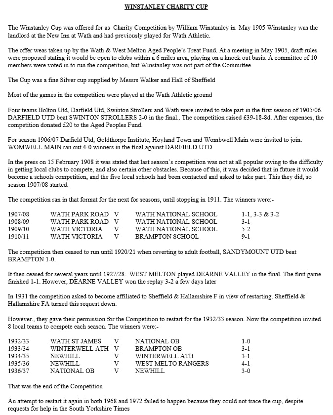William Winstanley of the New Inn (Wath) donated the Winstanley Cup to raise funds for an “Aged People’s Treat” (1906-1937).